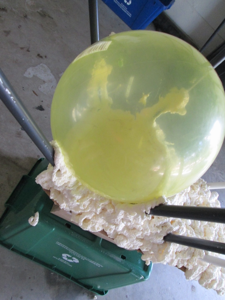I used a second can to fill in under the ball/butt (this makes sure it sticks) and to build up around the leg connections and anywhere I wanted it to go. Since my ball is transparent, I could see that I was getting all the crevasses. And it can be super messy because that’s what Halloween is, right?