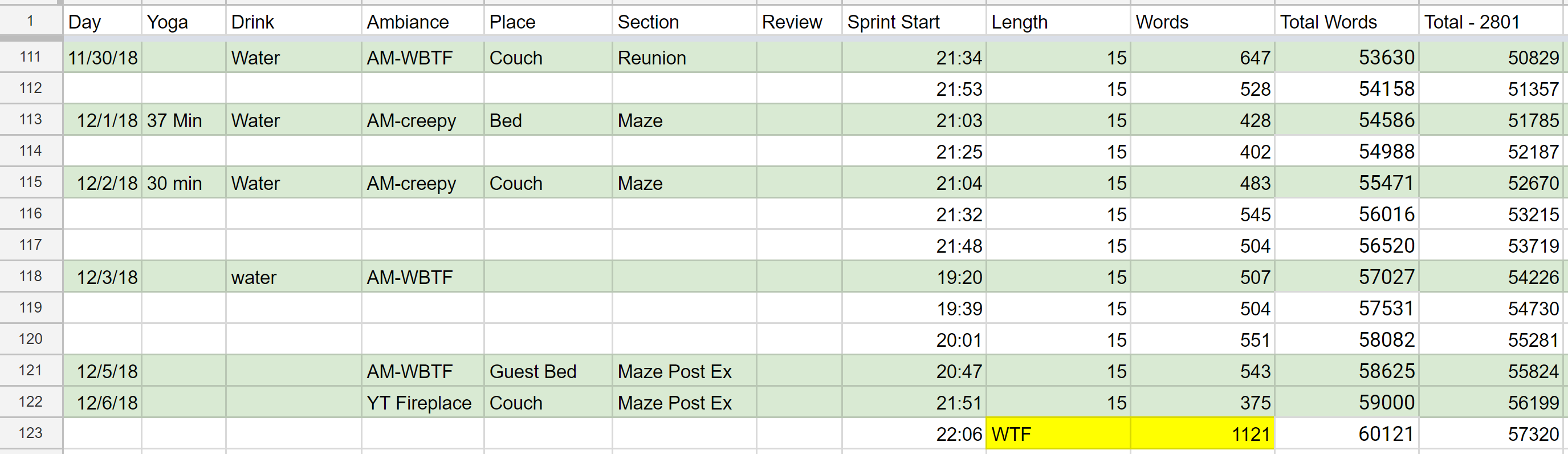 Here’s a look at last week’s writing schedule finishing up The Omega (title likely to be changed):