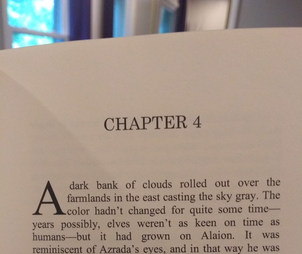 The Beginning – First of all, I’d really suggest making sure your prologue or first chapter starts on a right-hand page. I’m a fan of bucking industry standards and doing whatever you want, but this is so standard in every print book that it will probably feel weird to most readers starting out on the left. It’s a mirror of the cover, I think, to start out on that right-hand page. Or do whatever floats your boat, you’re in charge!