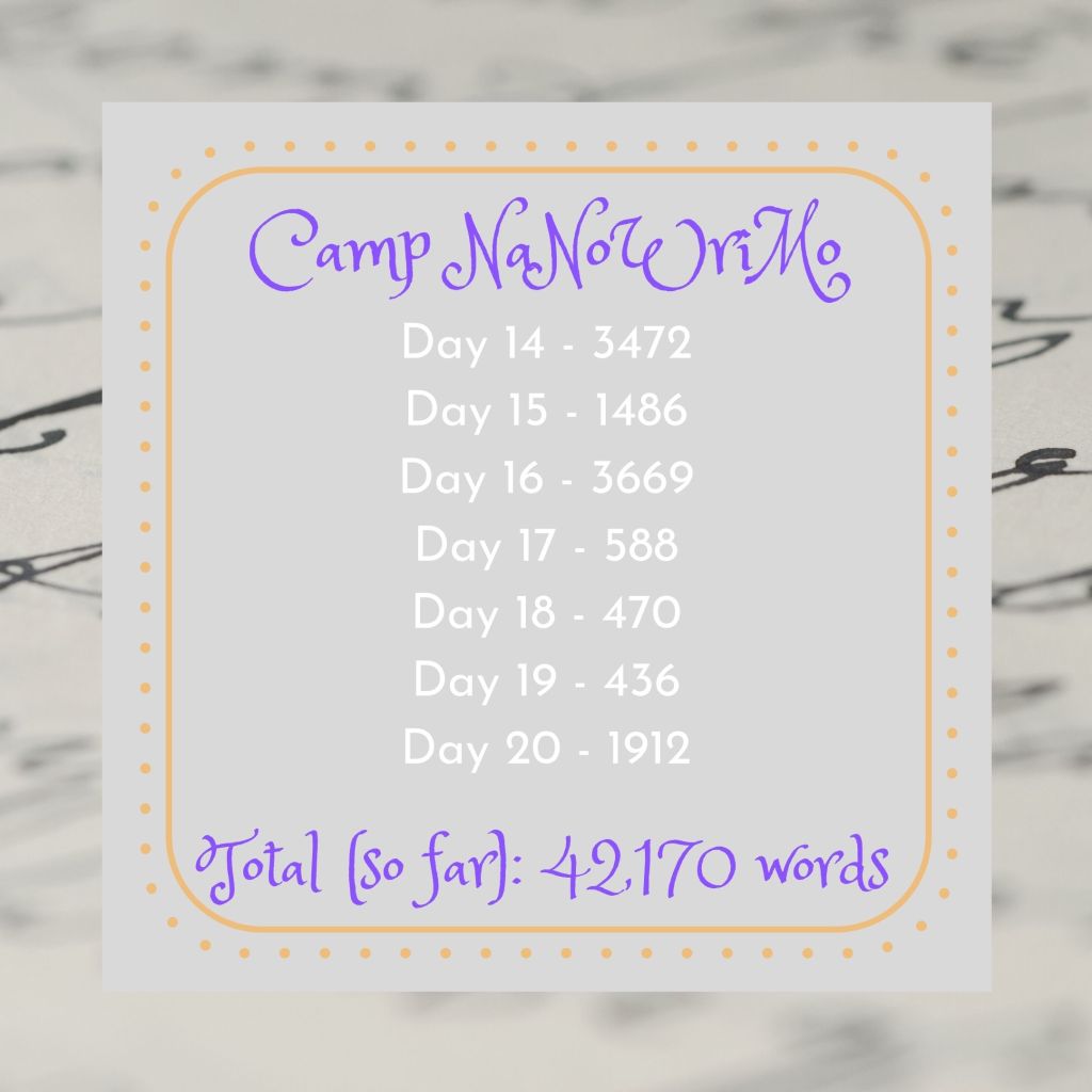 I still ended up hitting that mid-month slump because my plot kind of went sideways once again, but I am 1) still ahead of my own schedule and 2) way less worried about it than normal, so this is all absolutely a win!