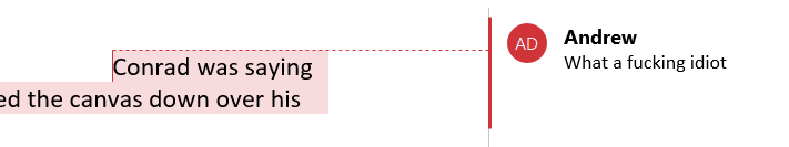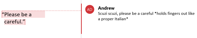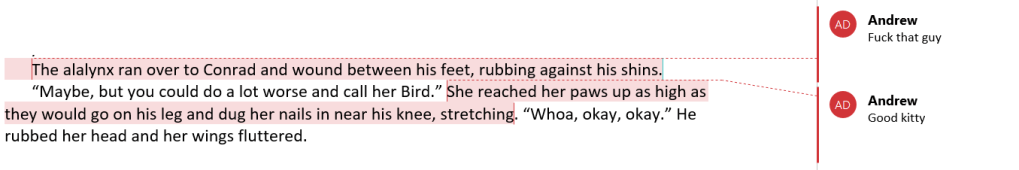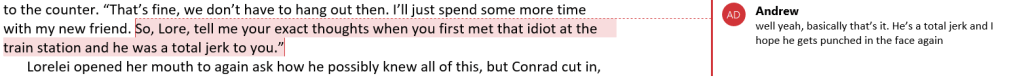 Anyway, because of this hatred, and because he just likes messing around, he leaves me some humorous comments on the doc on occasion, so I thought I’d share some choice ones here.
