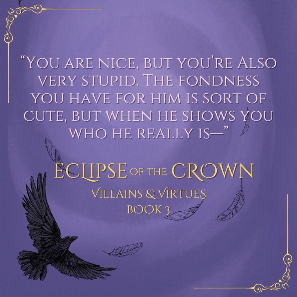 A snippet from Villains & Virtues, book three. It’s been a while since I’ve done a one line Wednesday. And it’s not one line, but whatever. I’m in a good place with these books, and I’m pumped to get them out, but it’s just slow going. Convincing myself to edit faster is so hard. I know explicitly that 4 fast edits and 1 slow one are better than 2 really slow ones, but getting myself to just barrel my way through the any revisions is haaaaaaaarrrrrrrrrrrrrd.