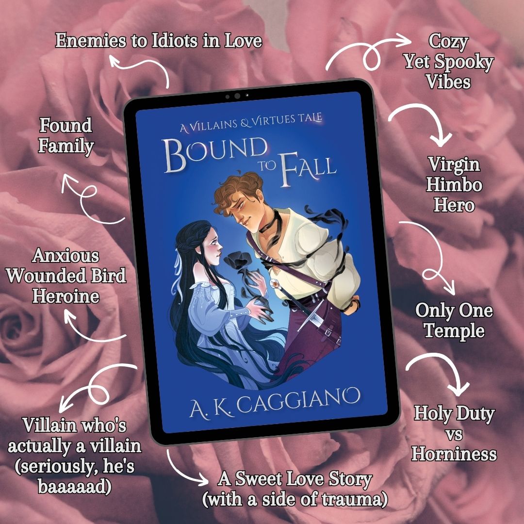 Quick Note: If you haven’t read Villains & Virtues yet, you might come across some slight spoilers here. Bound to Fall is a standalone spinoff of V&V, and discussion of it includes character death from the main trilogy.